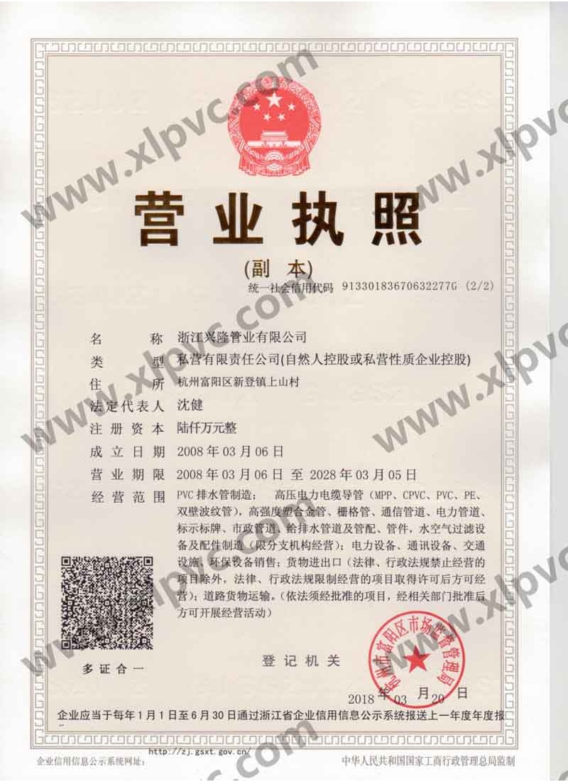 浙江興隆管業(yè)有限公司位于杭州市富陽(yáng)區(qū)(杭州第九新區(qū)),坐落在新登鎮(zhèn),相距杭州僅60公里,水、陸、空交通運(yùn)輸十分便利。浙江興隆管業(yè)有限公司前身為富陽(yáng)興隆塑料制品廠,成立于1992年,2008年改名浙江興隆管業(yè)有限公司,數(shù)十年來(lái),公司一直至力于管道的生產(chǎn),目前公司擁有國(guó)內(nèi)先進(jìn)的CPVC保護(hù)管生產(chǎn)線,HPVC()雙壁波紋管生產(chǎn)線,多孔管生產(chǎn)線,玻璃鋼電纜保護(hù)管生產(chǎn)線、MPP電纜保護(hù)管生產(chǎn)線。生產(chǎn)的主要產(chǎn)品有:CPVC電纜保護(hù)管、MPP電力電纜保護(hù)管(頂管)、高強(qiáng)度塑合金管、HDPE給排水管、HPVC()雙壁波紋管、玻璃鋼電纜保護(hù)管、埋地通信用的PVC-U多孔管、PE直壁管、PVC-U雙壁波紋管、梅花管等,年生產(chǎn)能力達(dá)20000萬(wàn)米。